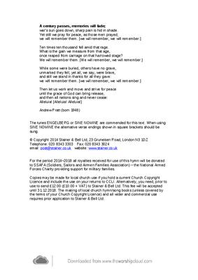 Copies may be made for local church use if you hold a current Church Copyright Licence and include the use on your returns to CCLI. Alternatively, you need, prior to use to send £12.00 (£10.00 + VAT) to Stainer & Bell Ltd. This fee will be accepted until 31.12.2018. The making of local church hymn/song books (unless covered by the terms of your Church Copyright Licence) and all wider and commercial use requires prior application to Stainer & Bell Ltd.