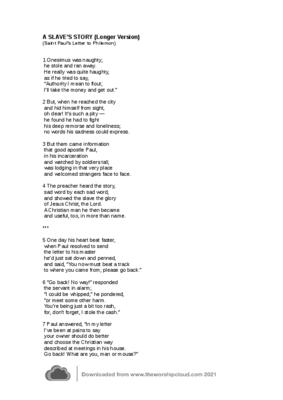 This hymn interprets the narrative of Onesimus and Philemon in a light-hearted way that might appeal to children.