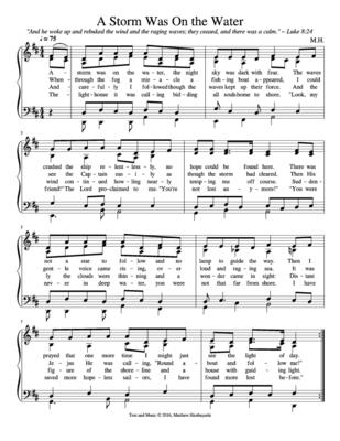 4-part sheet music for the original hymn "A Storm Was On the Water".
