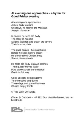 At evening one approaches – a hymn for Good Friday evening
