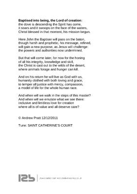 Baptised into being, the Lord of creation: