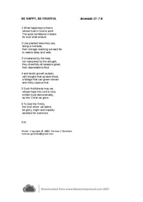 This hymn, in traditional language and style, uses the descriptive analogy of trees by the waterside in Jeremiah 17: 7-8 to illustrate the happiness and fruitfulness of those who trust in God.