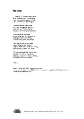 This hymn is about inclusivity in the church. Starting from the old evangelical "whosoever will", it goes on to address our modern situation.