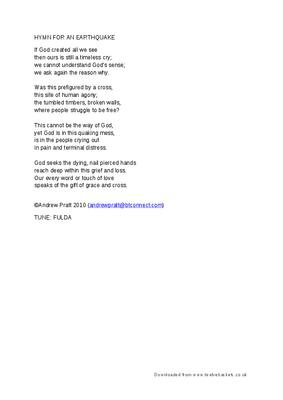 HYMN IN RESPONSE TO AN EARTHQUAKE - TUNE: FULDA