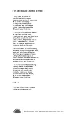 This is a revision of a hymn originally written for the millennium. However in a forward-looking church every day brings in a "bold new era" with opportunities for justice and compassion. It could well be used for a Church Anniversary.
