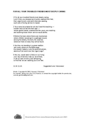 For All Your Troubled Friends Most Deeply Caring