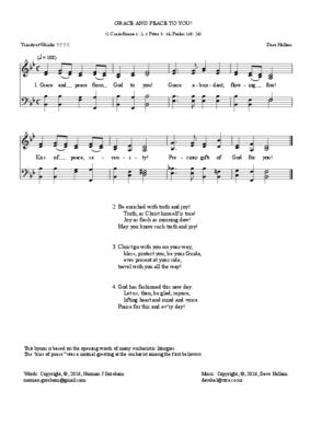 This hymn is in the form of a greeting based on the opening words of the eucharistic liturgy. It is here accompanied by an original tune by Dave Hallam.