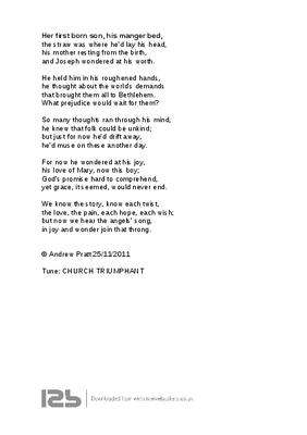 Her first born son, his manger bed, the straw was where he'd lay his head,