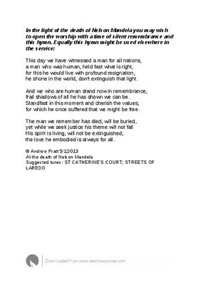 In the light of the death of Nelson Mandela you may wish to open the worship with a time of silent remembrance and this hymn.