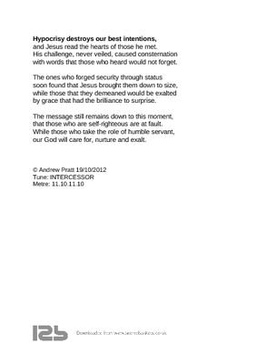 Hypocrisy destroys our best intentions, and Jesus read the hearts of those he met.