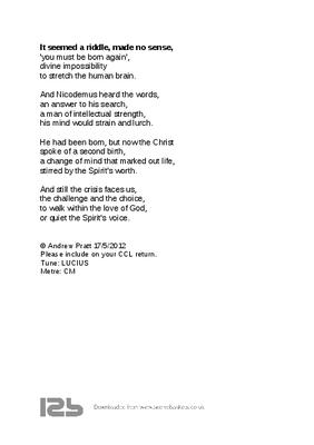 It seemed a riddle, made no sense, 'you must be born again',