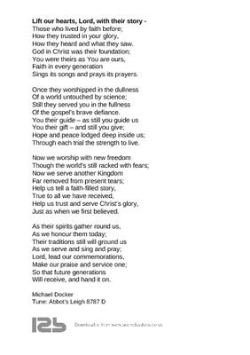 Lift our hearts, Lord, with their story -