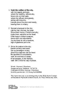 This hymn text was a co-winning entry in the 2011 Hymn Contest of Macalester Plymouth United Church,