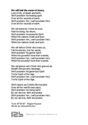 We'll proclaim his peaceful Spirit