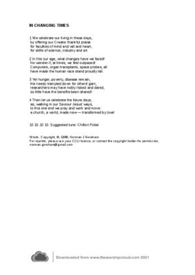 This hymn celebrates advances in science, industry and art and goes on to call for prayer and action that the world may be transformed by love.