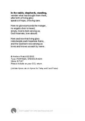 In the stable, shepherds, standing,
