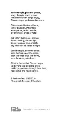 Simeon sings, yet knows the score.