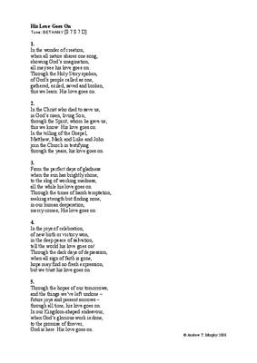 His Love Goes On Tune: BETHANY [8 7 8 7 D] 1.