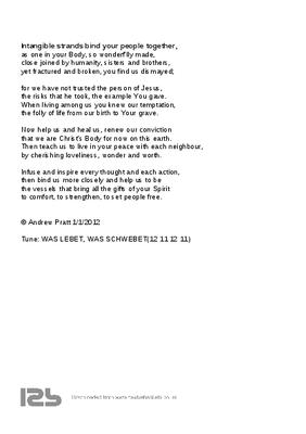 Intangible strands bind your people together, as one in your Body, so wonderf'lly made,
