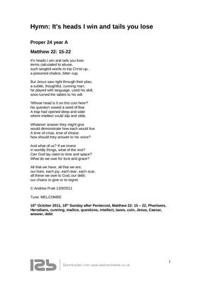 Hymn: It's heads I win and tails you lose