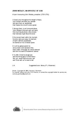 This is a hymn honouring John Wesley, preacher (1703-1791).