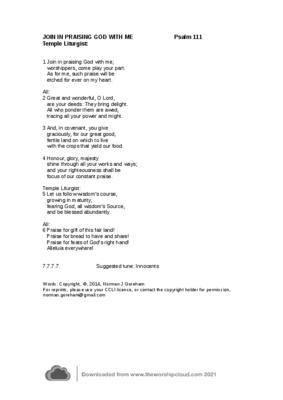 The atmosphere of worship in the Jerusalem Temple is re-created as a cantor (the Temple Liturgist) calls on all to praise God and seek wisdom. The people then give thanks for God's abundant gifts.