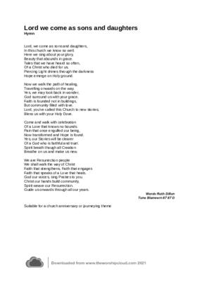 Hymn could be sung for a church anniversary or on the theme of journeying