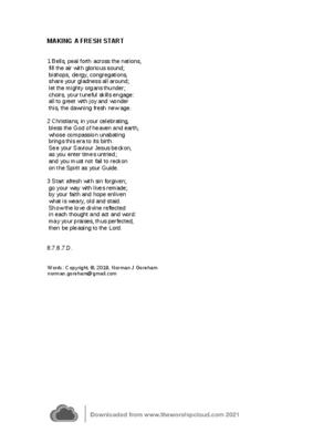 This is the re-working of a hymn originally written for the millennium, It would be appropriate in situations where communities of faith are intentionally marking a fresh start.