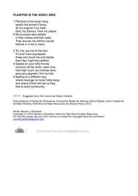 First published in Psalms for All Seasons: A Complete Psalter for Worship (Grand Rapids, Calvin Institute for Christian Worship, Faith Alive