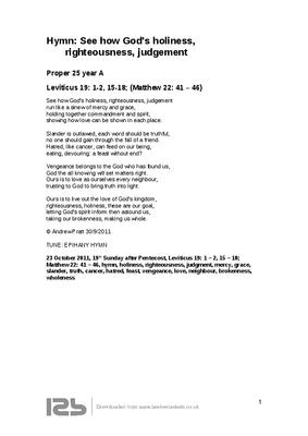 19th Sunday after Pentecost, Leviticus 19: 1 – 2, 15 – 18; Matthew 22: 41 – 46, hymn, holiness, righteousness, judgment, mercy, grace, slander, truth, cancer, hatred, feast, vengeance, love, neighbour, brokenness, wholeness