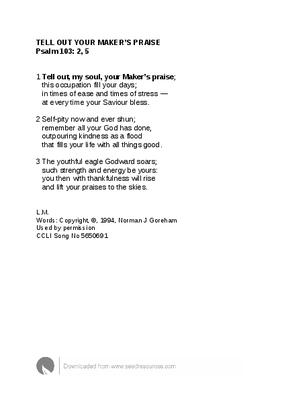 TELL OUT YOUR MAKER’S PRAISE Psalm 103: 2, 5