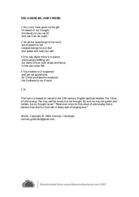 This hymn is based on words in the 14th-century English spiritual treatise The Cloud of Unknowing: "He may well be loved, but not thought. By love he may be gotten and holden, but by thought never." "Beat evermore on this cloud of unknowing that is betwixt thee and thy God with sharp darts longing love."