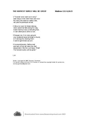 This is a hymn of encouragement based on the Parable of the Sower. In spite of all obstacles and difficulties in God's harvest field we shouldn't despair. The harvest surely will be great.