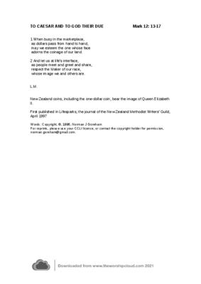 This hymn arises from a New Zealand context, where coins, including the one dollar coin, bear the image of Queen Elizabeth II.
