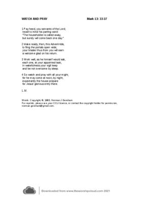 This hymn recalls the teaching of Jesus about the returning householder and the need for the servants to be vigilant. It calls on us to be ready for the Master's "glorious entry".