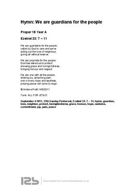 12th Sunday Pentecost, Ezekiel 33: 7 – 11, hymn, guardian,