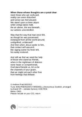 Tune: MACPHERSON’S FAREWELL (Anonymous Scottish, arranged by David Iliff – Jubilate Hymns); COE FEN