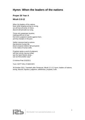 Twentieth after Pentecost, Micah 3: 5-12, hymn, leaders of nations, wrong, discord, injustice, judgment, selfishness, prophets, truth.