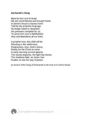 The words of Luke 1:68-79 written to be sung to the tune of In Christ Alone (or other similar tune)