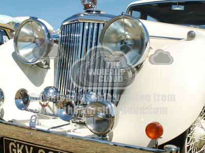 Front of Vintage car showing chrome radiator