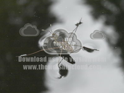 A pond skater, that walks on water using the surface tension rest on the surface - you can see the indentations made by its feet