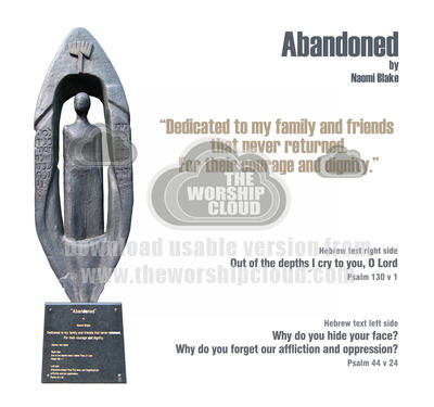 Poster of sculpture 'Abandoned' by Naomi Blake.