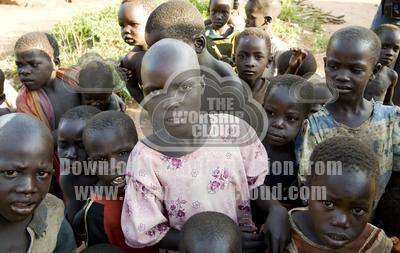 Ugandan children from an IDP Camp (Internal Displacement Camp). In 2007 the 21 year civil war ended. During that time villages were raided at night and children abducted and forced to be child soldiers. People sought safety in numbers and formed IDP camps. Even though the war is over people are still fearful to move back to their villages. This photo was taken 2 years on and thousands are still living in the camps.