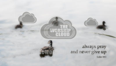 Picture of a female mallard, with her three ducklings in front and deliberately out of focus.