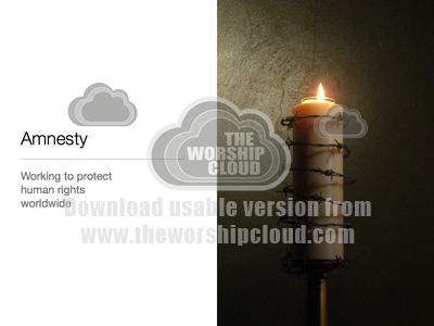 An image of an amnesty candle taken from Liverpool Catholic Cathedral with the Amnesty ethos shown on the left