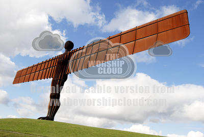 Antony Gormley's landmark sculpture the Angel of the North in Gateshead. Made from 200 tonnes of steel, it stands 20 metres (66ft) tall, with wings measuring 54 metres (177ft) across. It was installed on its site beside the A1 in February 1998.