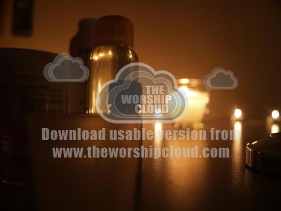 containers of water and oil reminiscent of a spa are bathed in light from a candle