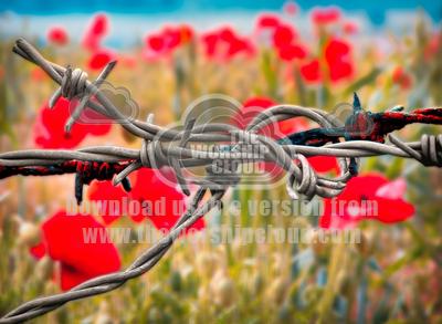 barbed wire and poppies for remembrance sunday