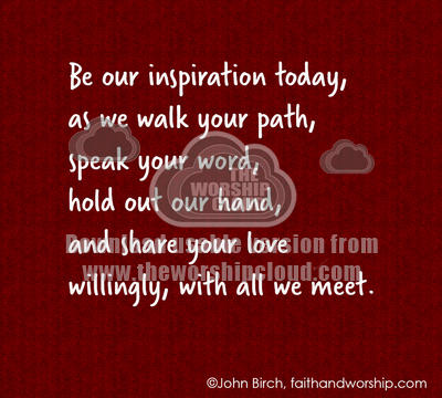 Be our inspiration today, as we walk your path, speak your word, hold out our hand, and share your love willingly, with all we meet.