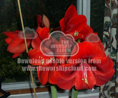 Red Anaryllis in full bloom Two stems each with three Flowers.